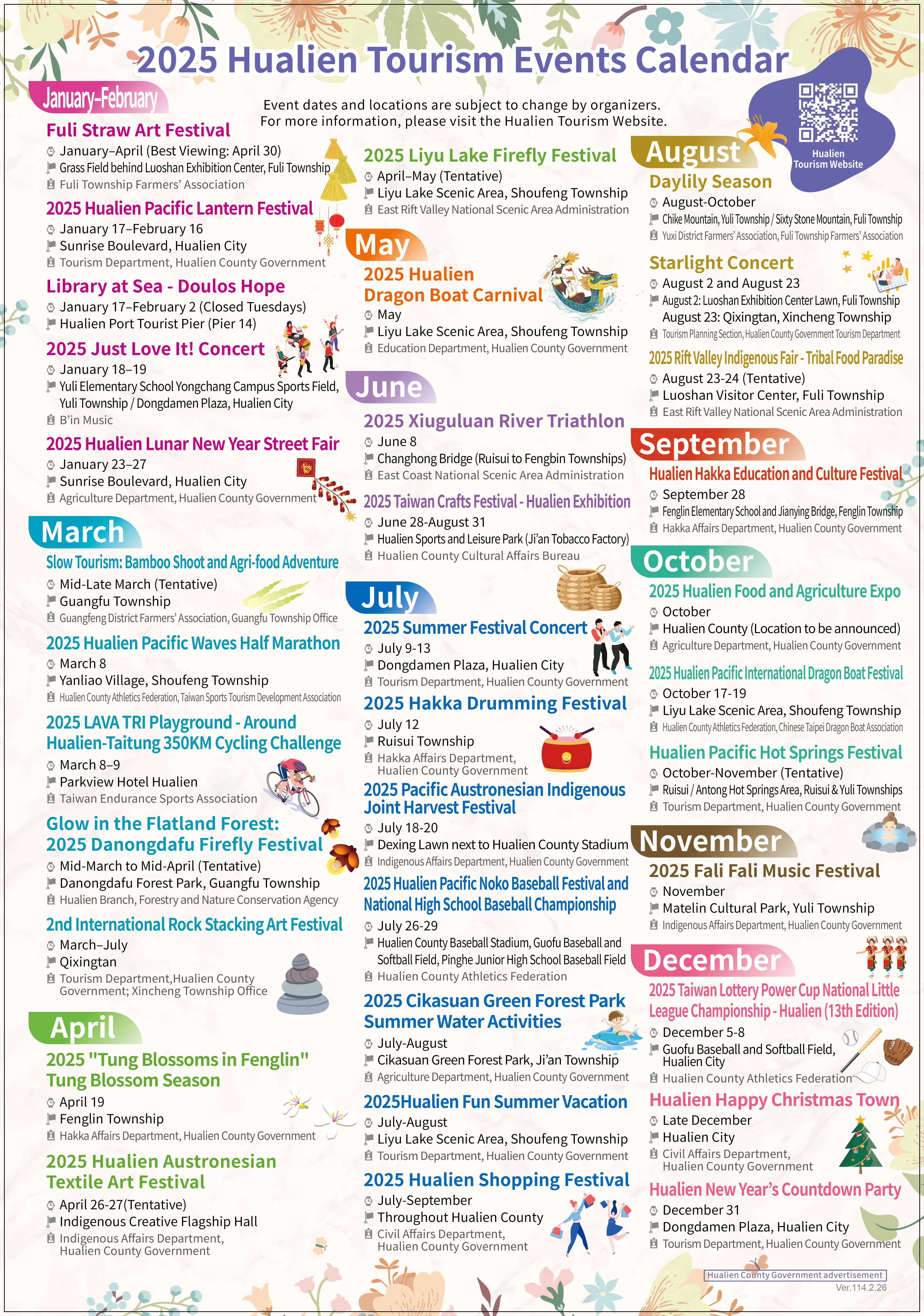 Event dates and locations are subject to change by organizers. For more information, please visit the Hualien Tourism Website.
