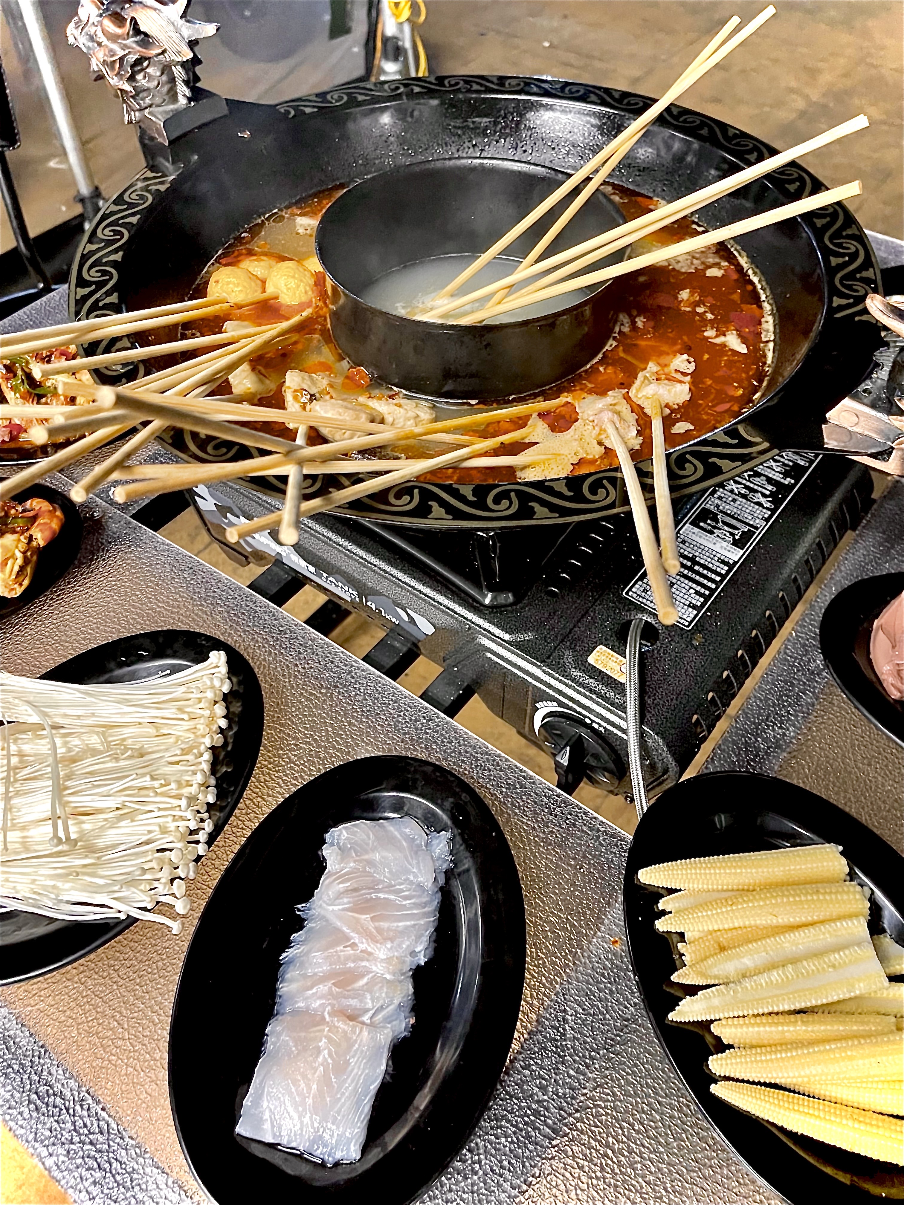 이 가게에서는 마라궈를 판매하고 있으며, 중국의 거리 음식을 본떠 재료를 통째로 대나무 꼬치에 꽂아 주문대로 냄비에 넣고 끓입니다. 본 상점의 식재료에는 정상가가 적용되어 꼬치류는 모두 개당 10TWD, 접시에 담긴 것들은 모두 접시당 30TWD, 탄산음료는 한 병당 30TWD, 주류는 60TWD, 큰징거미새우는 일인분 한 근에 450TWD, 껍질채 먹는 새우는 일인분 15개 250TWD이며, 위의 메뉴들은 모두 마라 육수(매운 정도 조절 가능)를 선택할 수 있습니다.