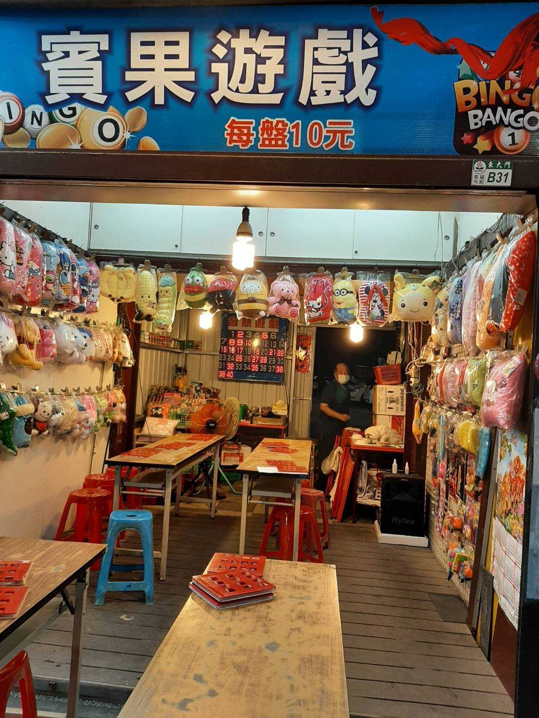판매 상품:장난감, 인형상품 소개:사장님이 30년째 운영하고 있는 빙고 게임은 남녀노소 누구나 즐길 수 있는 스마트한 게임입니다. 게임 한 판에 10TWD이며, 각 판에는 세 줄이 있는데 한 줄에 한 칸만 남으면 팅파이입니다. 쯔모 (80점), 후파이(20점)으로 게임이 끝나면 점수에 따라 선물로 교환할 수 있습니다.